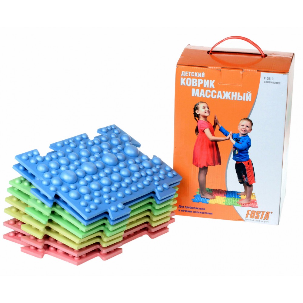 Fosta - produit des tapis de massage pour bébés. Les tapis de cette société sont fabriqués en mousse de polyéthylène et se composent de huit modules pouvant être assemblés comme un puzzle, en forme de rectangle ou de chemin circulaire.