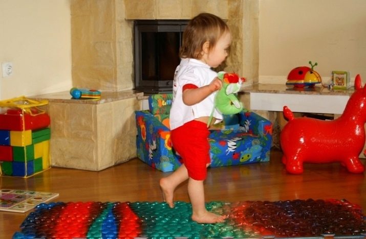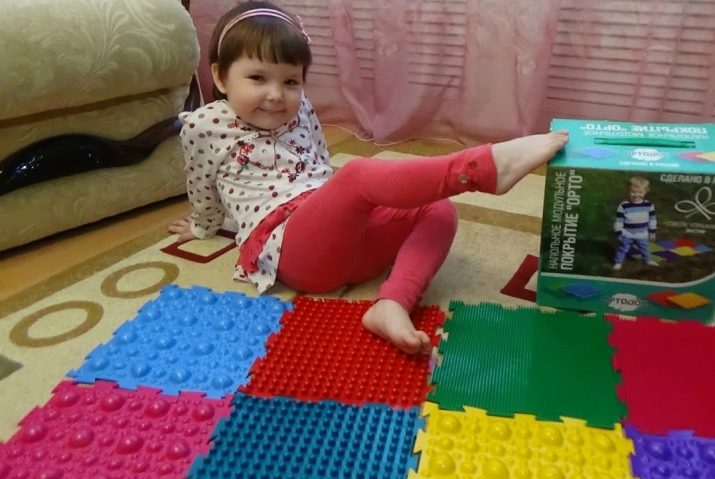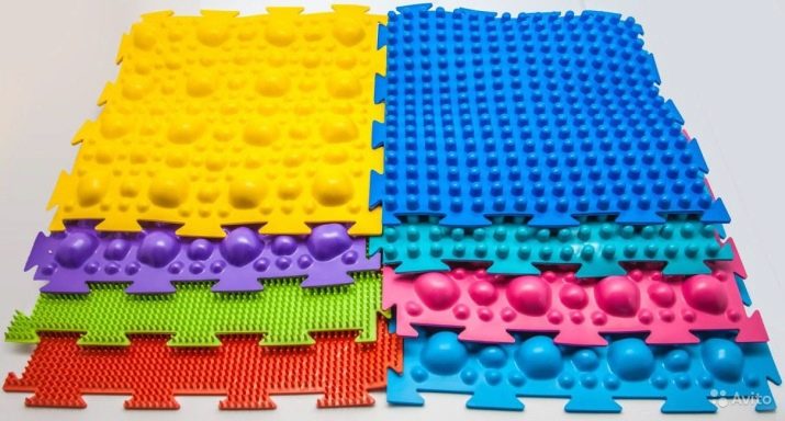 Ils diffèrent par le matériau à partir duquel ils sont fabriqués. Ce peut être du silicone, du plastique. Eux-mêmes peuvent être fabriqués à partir de châtaignes, bouchons de bouteilles, harnais divers. La rigidité des tapis de massage des pieds est également différente. Ils peuvent être doux et élastiques, pour les enfants des premières années de la vie, et ils peuvent être assez difficiles pour les enfants plus âgés.Des tapis orthopédiques sont également disponibles en casse-tête séparés. Vous pouvez choisir une texture différente et disposer un tapis de 8 modules, ou couvrir toute la pépinière. Ce tapis de composition serait mieux pour imiter une promenade pieds nus dans la nature, et à condition que toute la pièce en soit recouverte, les enfants devront marcher dessus quand même.