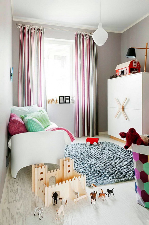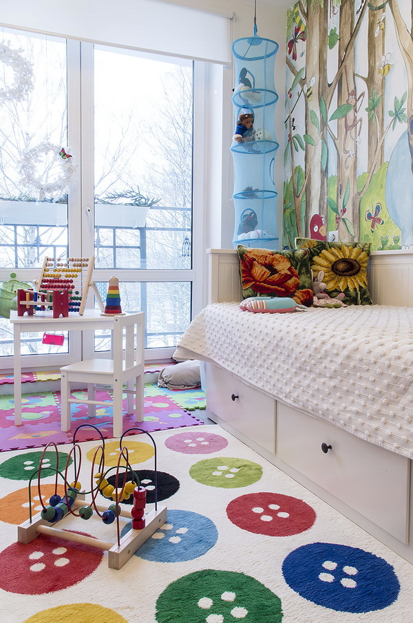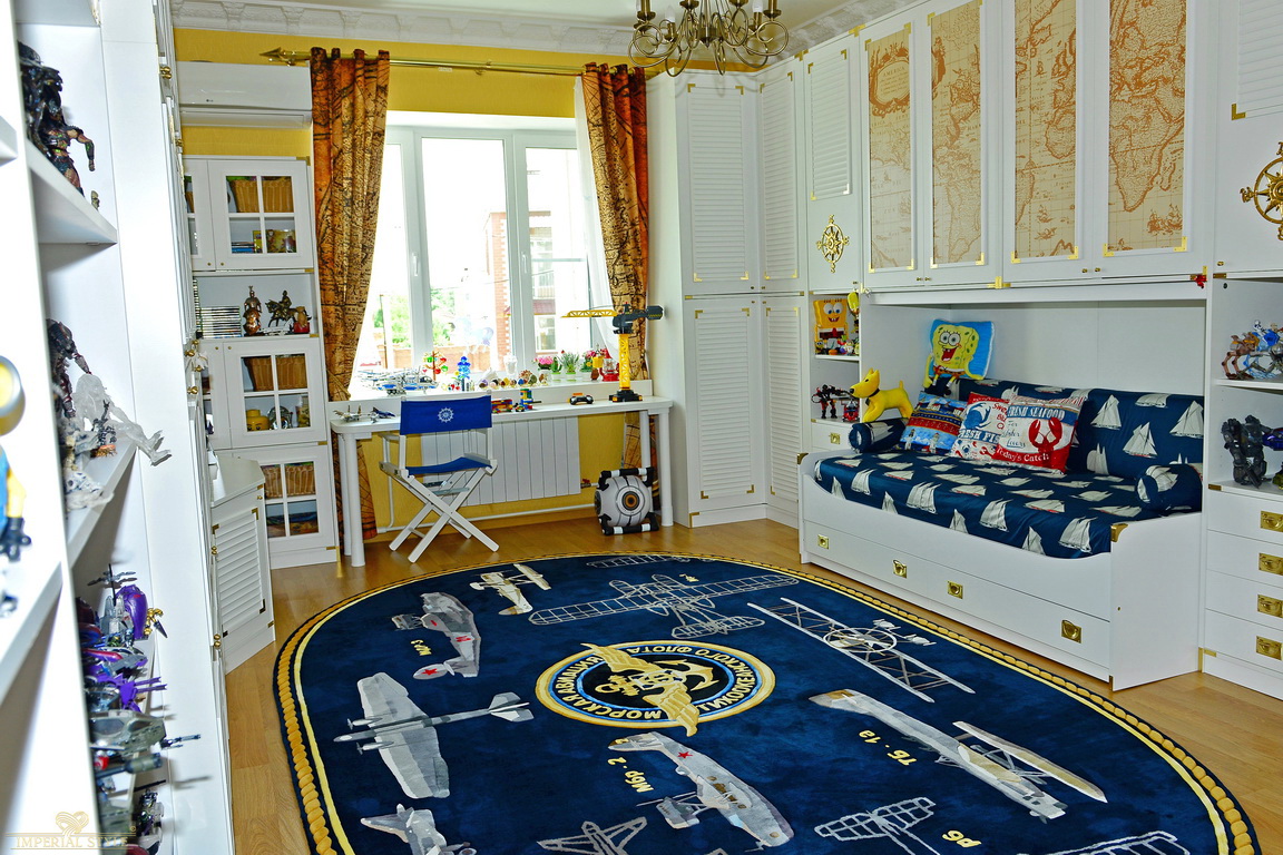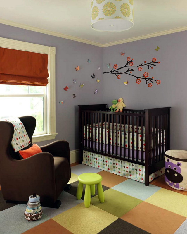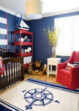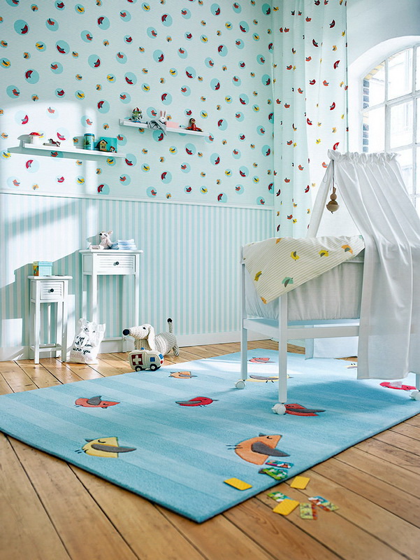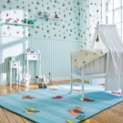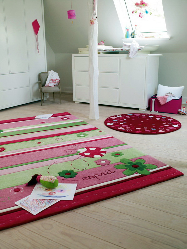 L'absence de tapis pour l'aménagement des chambres des enfants peut être considérée comme le fait que les enfants jonchent beaucoup, et le tapis, comme vous le savez, est difficile à garder propre. Il se salit facilement et sauve la saleté. Cela signifie que dans la pépinière, il est souhaitable d'éviter les tapis légers.Dans le même temps, les fibres des tapis ont tendance à attirer et à retenir la saleté et la poussière, ce qui peut nuire à la qualité de l'air dans la pièce.