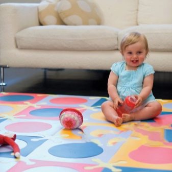 En choisissant un sol modulaire souple, vous devez faire attention à ce qu'il corresponde à l'âge de l'enfant. Dans de nombreuses versions, il existe de petites pièces faciles à retirer et dangereuses pour les plus jeunes enfants. De tels casse-tête, qu'il s'agisse de constructeurs ou de casse-têtes, ne peuvent pas être utilisés dans les chambres d'enfants de moins de 3 ans. En outre, un tapis de puzzle doux, il est souhaitable d'utiliser comme un ajout au revêtement de sol principal, par exemple, à la moquette, et choisir, étant donné ce fait. Lors du choix, il convient également de noter qu’une partie du tapis est peut-être mieux arrangée sous la forme d’un revêtement orthopédique, dans le but de prévenir le pied plat chez l’enfant.