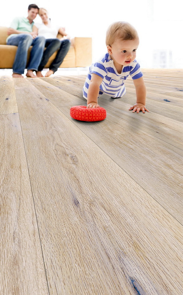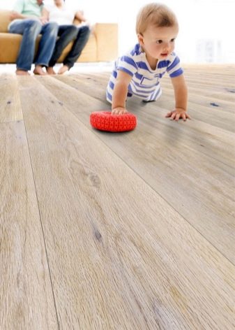 Tout d'abord, un tel critère est important pour le confort du revêtement de sol, c'est-à-dire sa chaleur et sa douceur. Les parents qui jouent avec des bébés sur le sol ne l'aimeront pas non plus si le sol est froid et dur. Dans la plupart des cas, les enfants sont immunisés contre l’inconfort du sol, mais ils peuvent facilement attraper un rhume s’ils commencent à ramper le long des planches fraîches de parquet ou de linoléum.