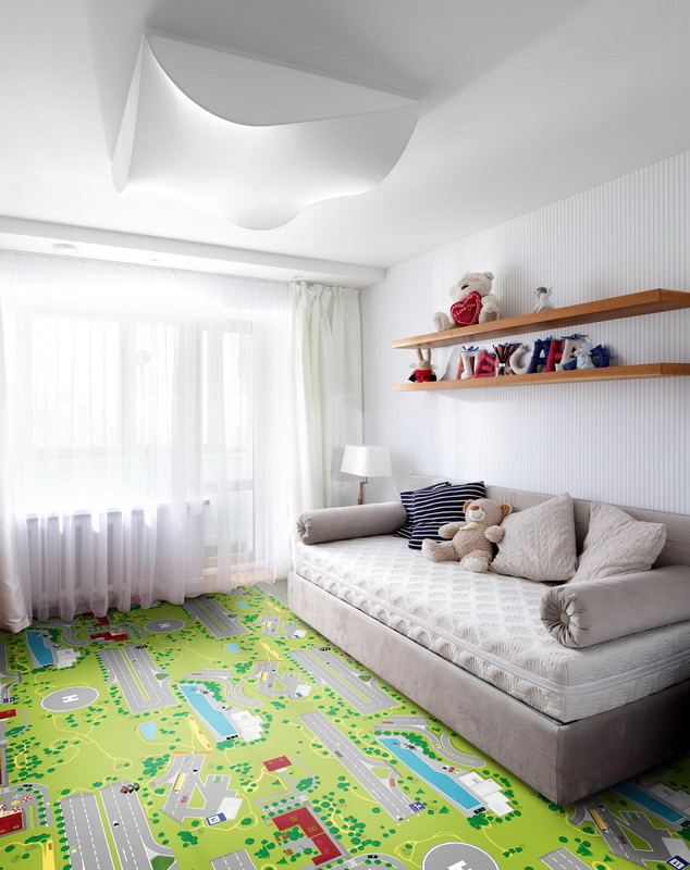 Le choix traditionnel du revêtement de sol dans les chambres et les salles de jeux pour enfants est un tapis ou une moquette.