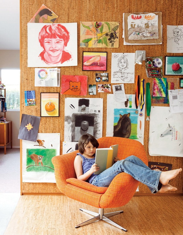 Il n'est pas souhaitable de placer des plaques de liège dans la chambre des enfants avec une surface protégée par un vernis auquel sont ajoutés des copeaux de céramique que l'enfant frotte sur ses genoux et ses coudes. Le meilleur choix est le carrelage en liège de 6 mm d'épaisseur, avec chanfreins supérieurs en placage naturel et avec un revêtement de pré-enduction en usine. Ce qui est important, c’est le fait que le revêtement supérieur du placage se remette de petites égratignures et de petites bosses au fil du temps; cela doit également être pris en compte lors du choix.