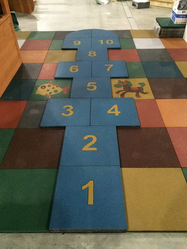 Les revêtements de sol en caoutchouc de la pépinière se présentent sous la forme de revêtements de sol en rouleau, de carreaux de tuiles modulaires de 50 sur 50 cm, de petites «agrafes» sur les bords, ou de simples carreaux.