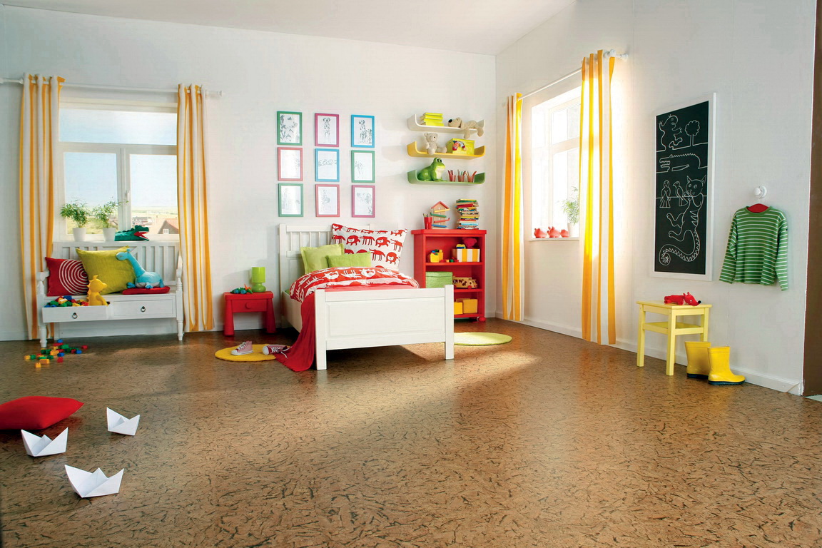 Le liège doit être choisi pour la chambre des enfants, en considérant si un tel composant chimique, comme un plastifiant, est utilisé dans sa production. Le plastifiant qui lie les granulés de liège en un seul ensemble est une source de vapeurs toxiques et n’est pas souhaitable pour une petite chambre d’enfant. Vous devez donc accorder une attention particulière à ce moment lors du choix et examiner soigneusement les caractéristiques du fabricant. La plus petite quantité d'adhésif est présente dans les revêtements de liège produits au Portugal.