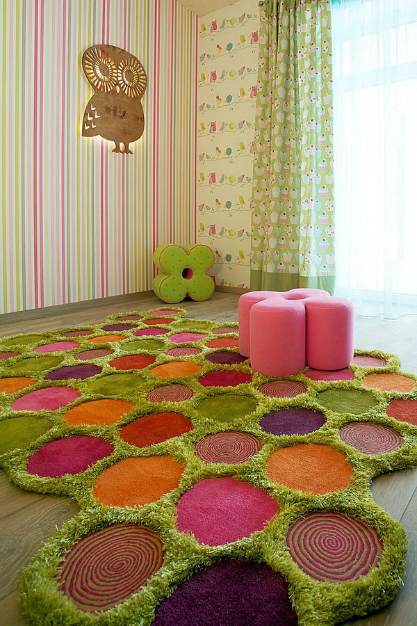 Pour les enfants, tapis adapté avec un poil plus court, plus facile à nettoyer. Peut-être plus confortable sera la version moderne du tapis dans une conception modulaire. Une attention particulière devrait être accordée à la technologie de la peinture. Vous ne devez pas choisir de produits avec une méthode de teinture imprimée, ces produits ne sont pas teints en profondeur dans les fibres et perdront leur couleur plus rapidement. Plus le tapis est dense, plus il durera longtemps.