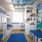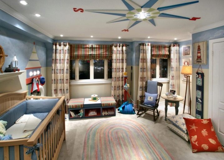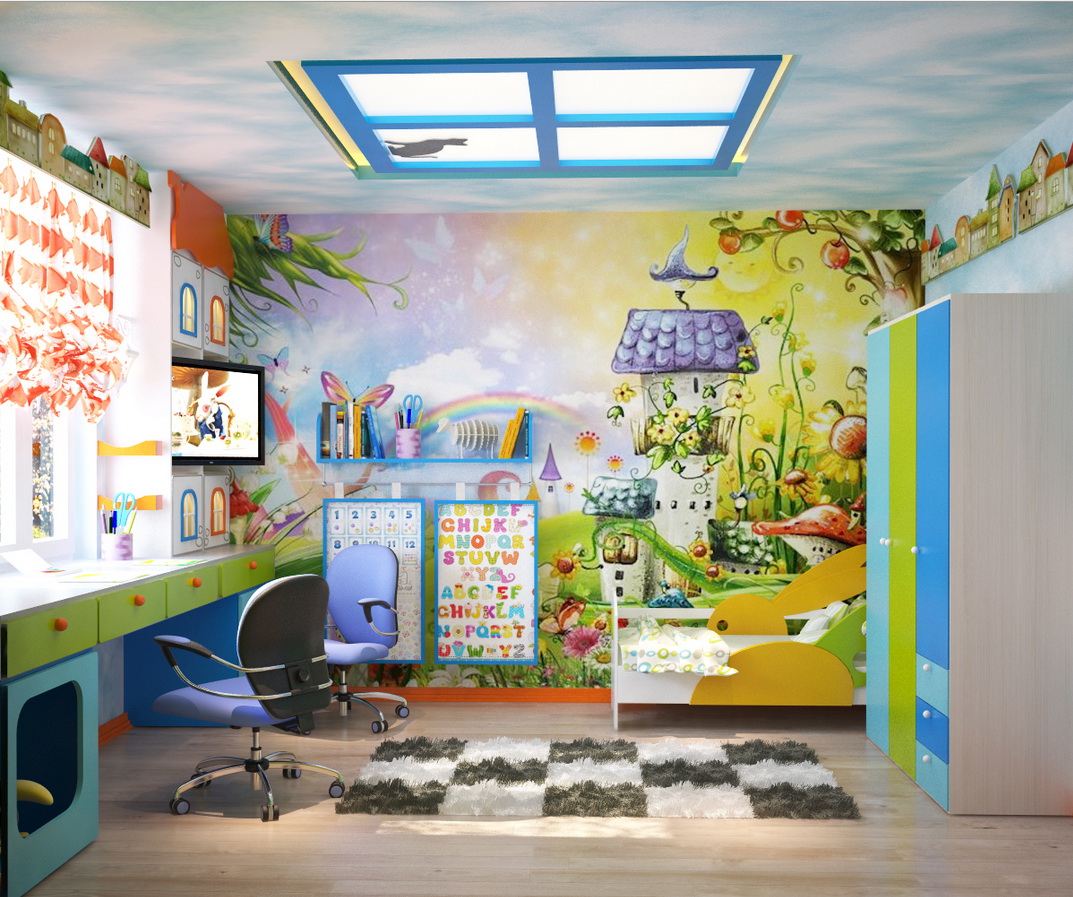Troisièmement, bien entendu, la conception du plafond est importante pour l’enfant. L'illustration thématique, les personnages des films d'animation préférés, la palette de couleurs, tout cela doit être discuté avec le petit habitant de la pièce.