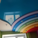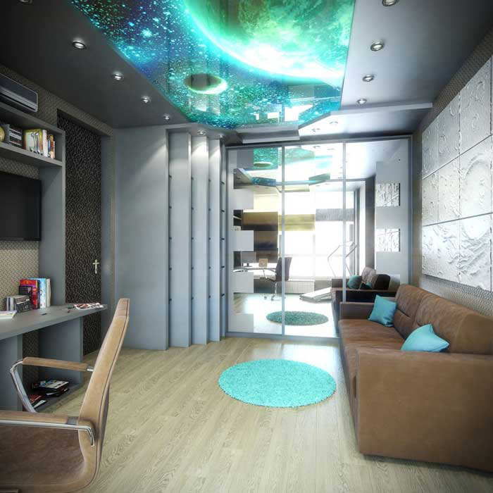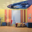 Très souvent, le plafond tendu est aménagé dans la chambre des enfants pour le garçon. Fondamentalement, il s’agit d’un mince film de PVC ou d’un tissu imprégné d’une solution spéciale.