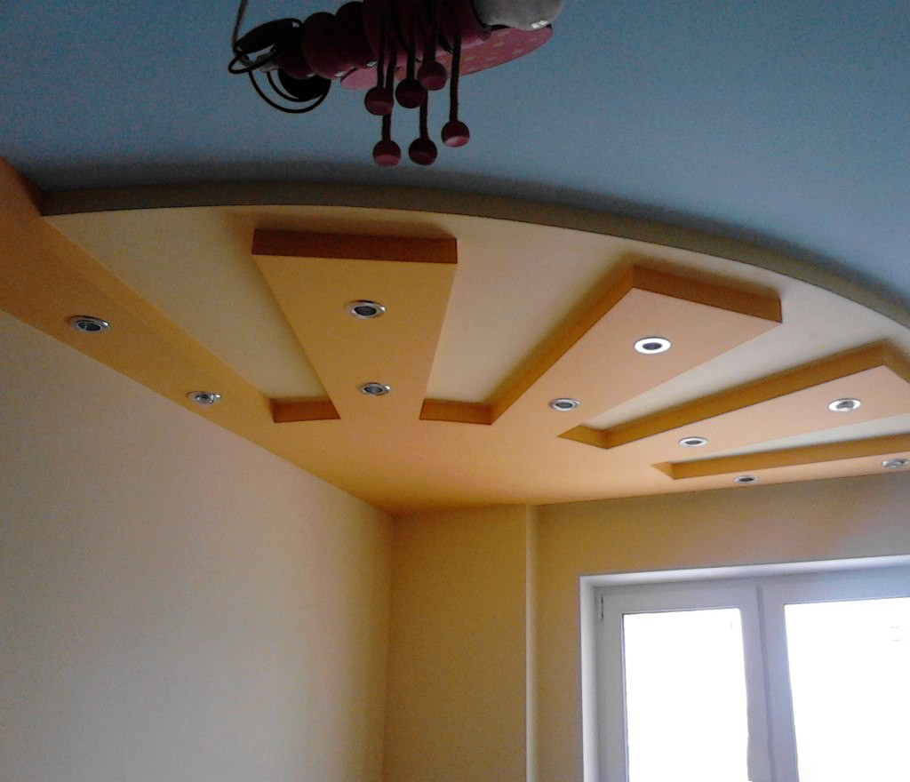 Tous les fantasmes concernant le plafond volumétrique façonné peuvent être satisfaits à l'aide d'une conception à plusieurs niveaux. Cela peut être considéré à juste titre comme une combinaison, car les structures les plus complexes peuvent être matérialisées à la fois par des éléments de tension et par du gypse.