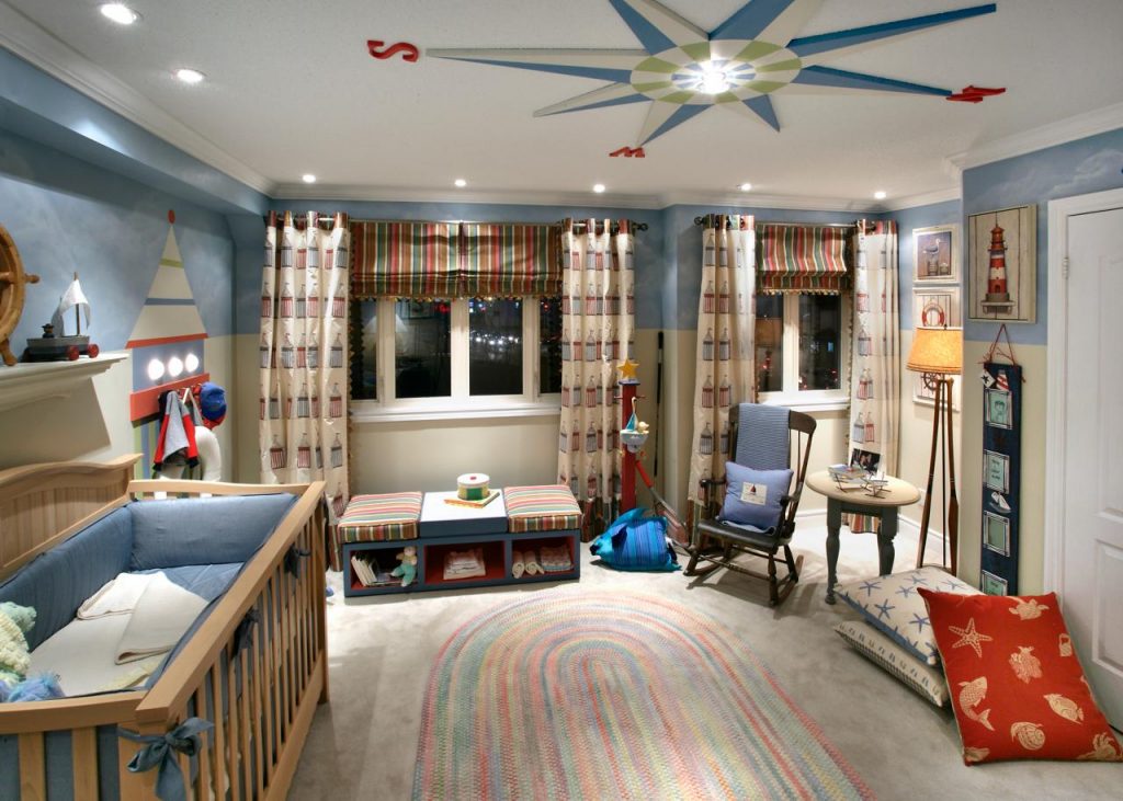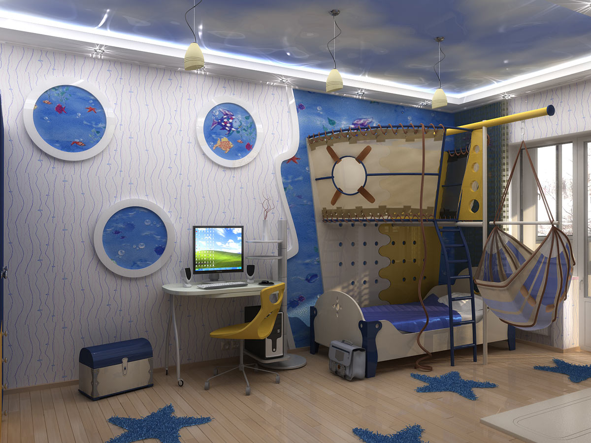 Le stéréotype que tout le monde connaît probablement: les filles sont roses, les garçons sont bleus. Ne faites pas maintenant une distinction aussi fondamentale. Les experts ont établi depuis longtemps que la prédominance de l’une de ces couleurs dans la chambre des enfants est en principe inappropriée et même contre-indiquée, car le rose vif se réfère aux couleurs irritantes du système nerveux central, et le bleu est considéré comme une couleur de rejet froid. Par conséquent, la solution de couleur optimale pour la chambre des enfants du garçon est une combinaison de plusieurs couleurs, de préférence chaudes. Il est recommandé d’utiliser des teintes calmes avec des éléments clairs qui attireraient le regard.
