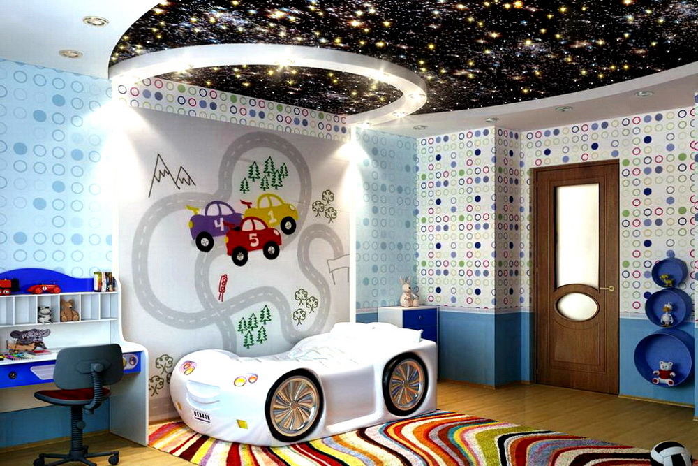 La chambre d’un enfant n’est pas une pièce ordinaire d’un appartement, mais tout un monde où un garçon passe le plus clair de son enfance, dont il se souviendra toute sa vie. En effet, dans la pièce, il dort, joue, se développe et grandit. Chaque détail influe sur le niveau de confort de la pièce. Par conséquent, tous les éléments de conception, et en particulier le plafond, doivent faire l'objet d'une attention particulière dans la chambre de bébé.