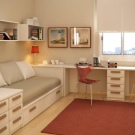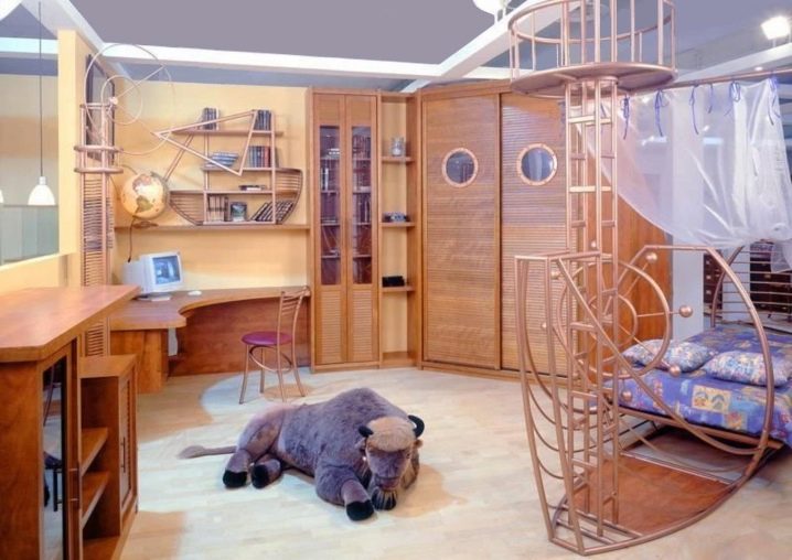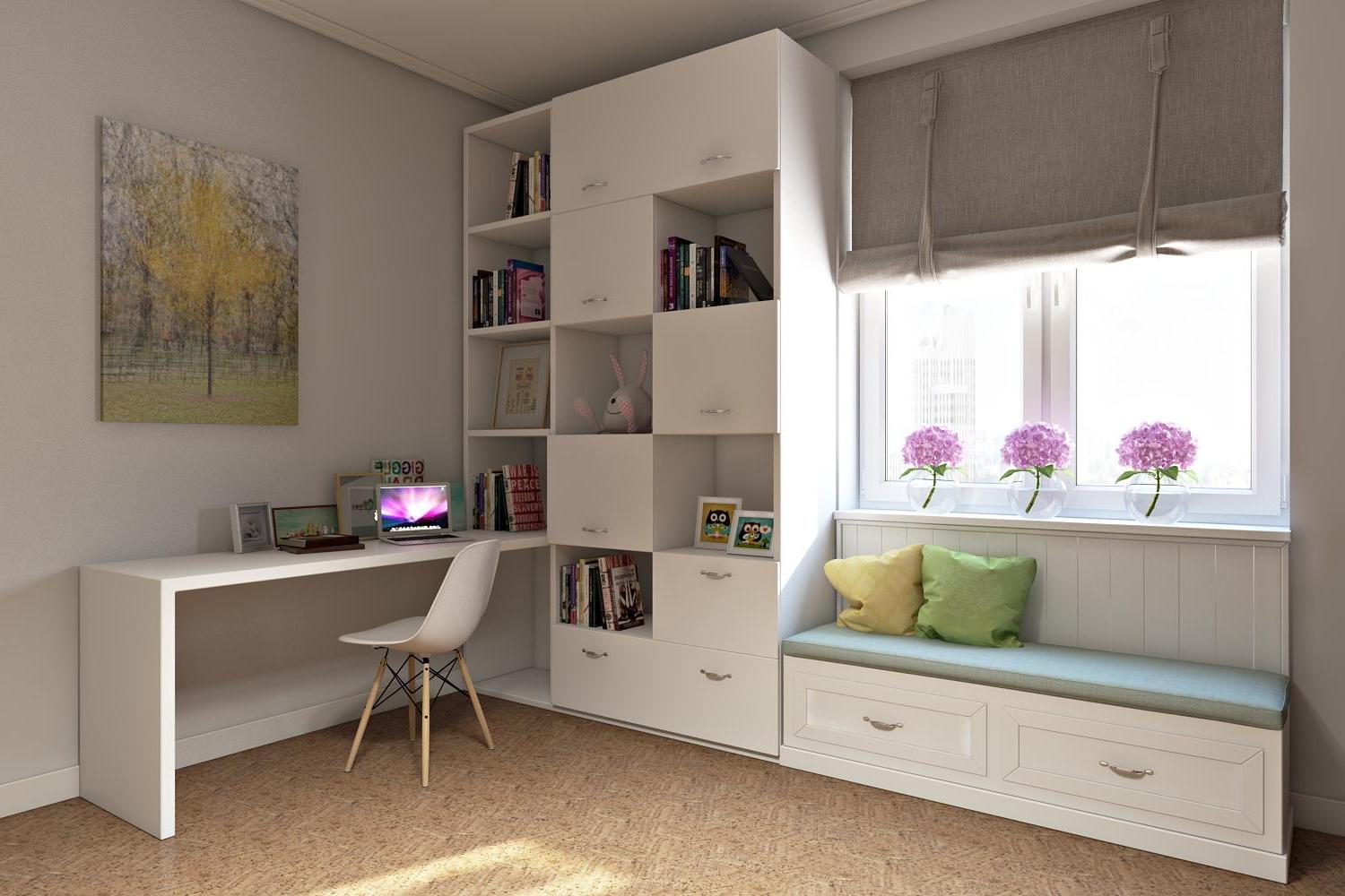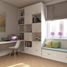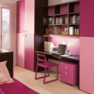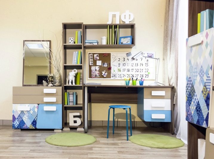 Les coins d'école sont très populaires, où plusieurs meubles sont combinés à la fois: une table, des étagères, des armoires, des tiroirs, des tables de chevet. C'est très pratique et multifonctionnel.