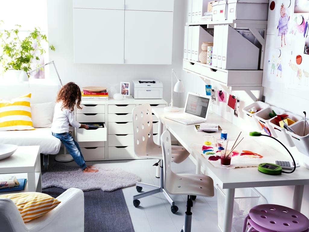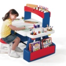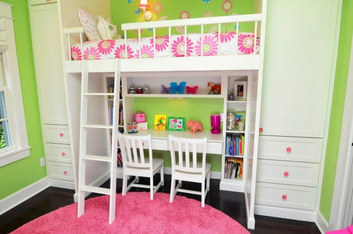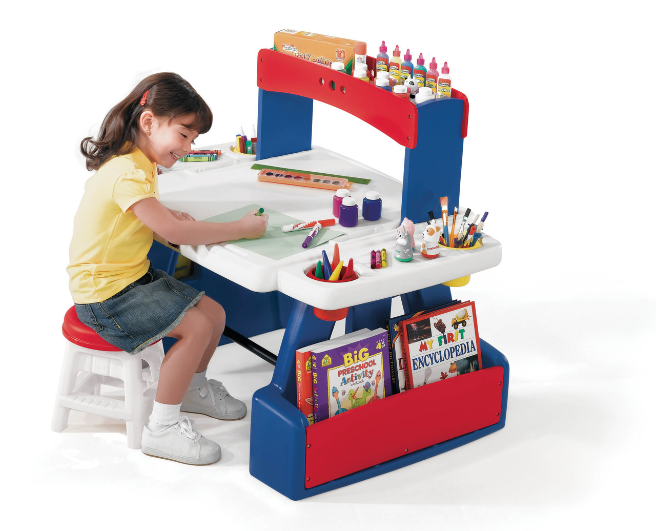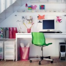 - Pour la créativité. Une idée originale pour les enfants qui aiment être créatifs. Ici, l’espace est judicieusement organisé: compartiments avec outils, pente de la table, boîtes où vous pouvez placer des décors de créativité. Toutes les conditions sont créées pour le vol de fantaisie!