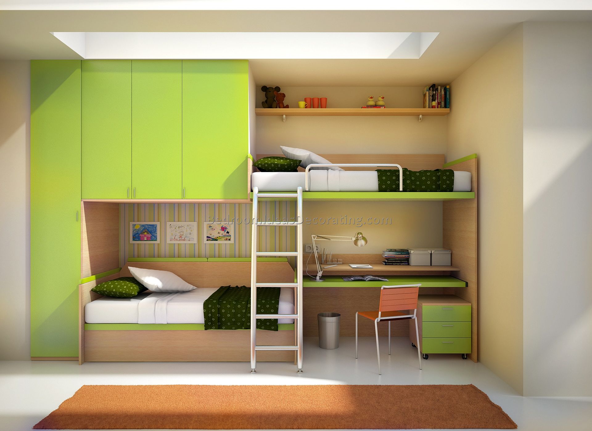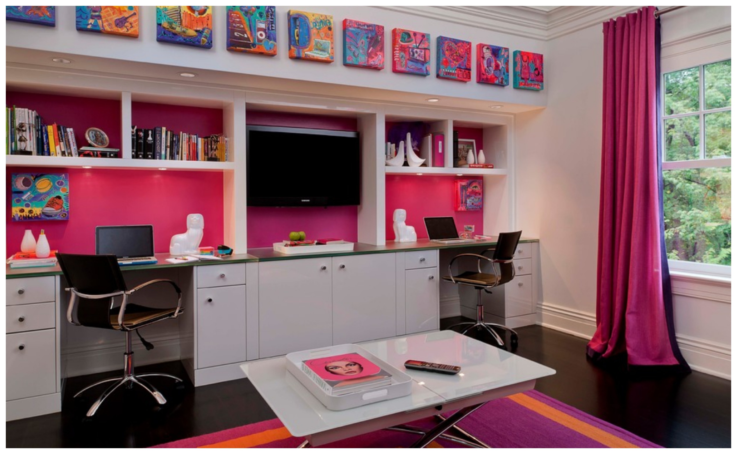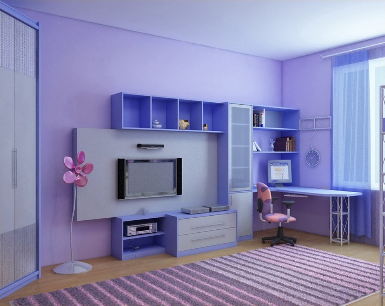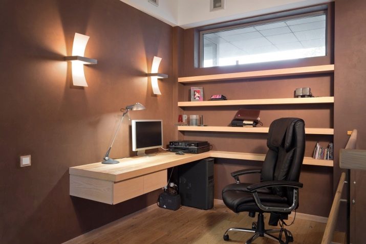 Au-dessus de la table, vous pouvez suspendre des étagères multicolores pour raviver le coin. Même au lieu de cela, vous pouvez laisser le mur vide pour des affiches ou des dessins.