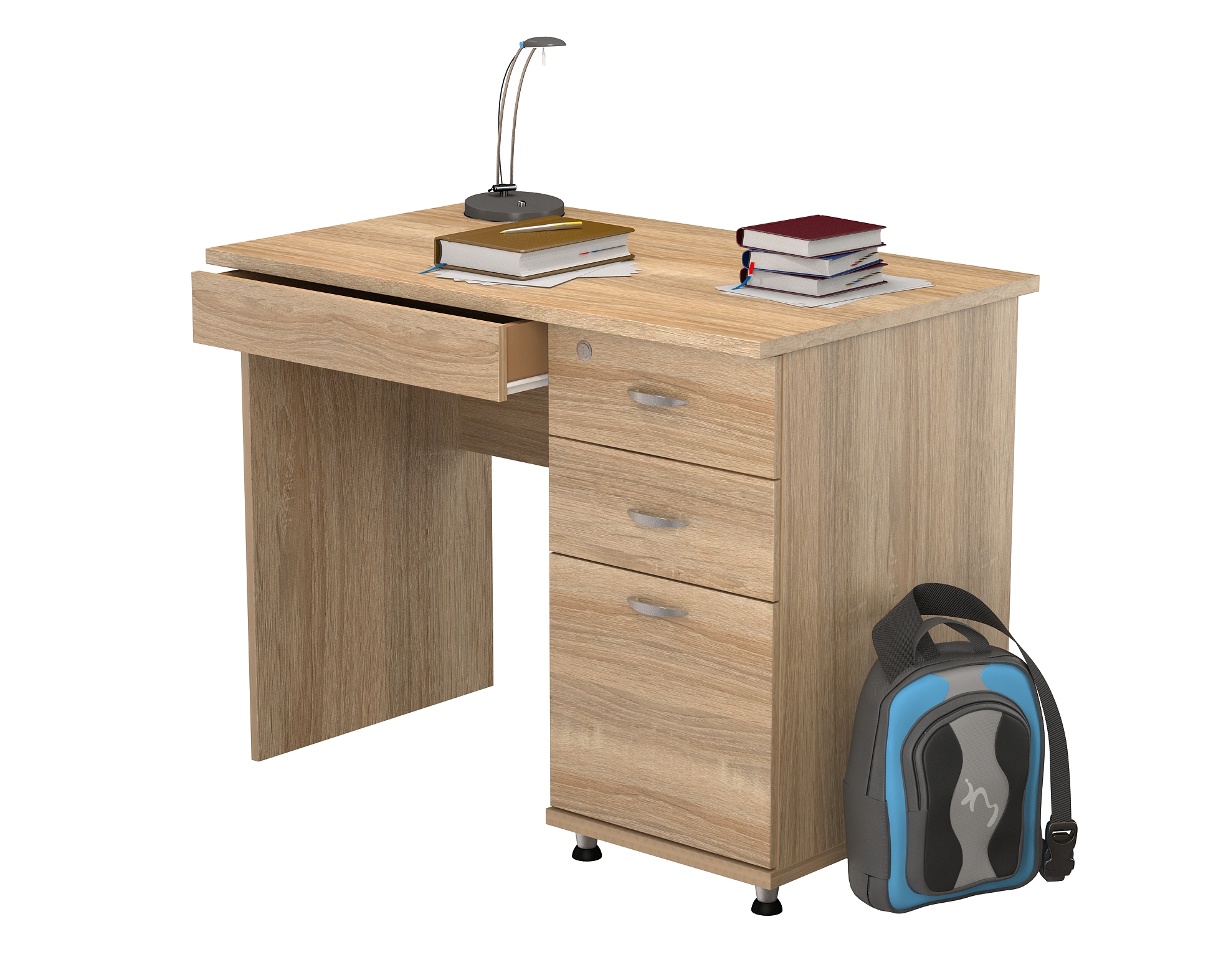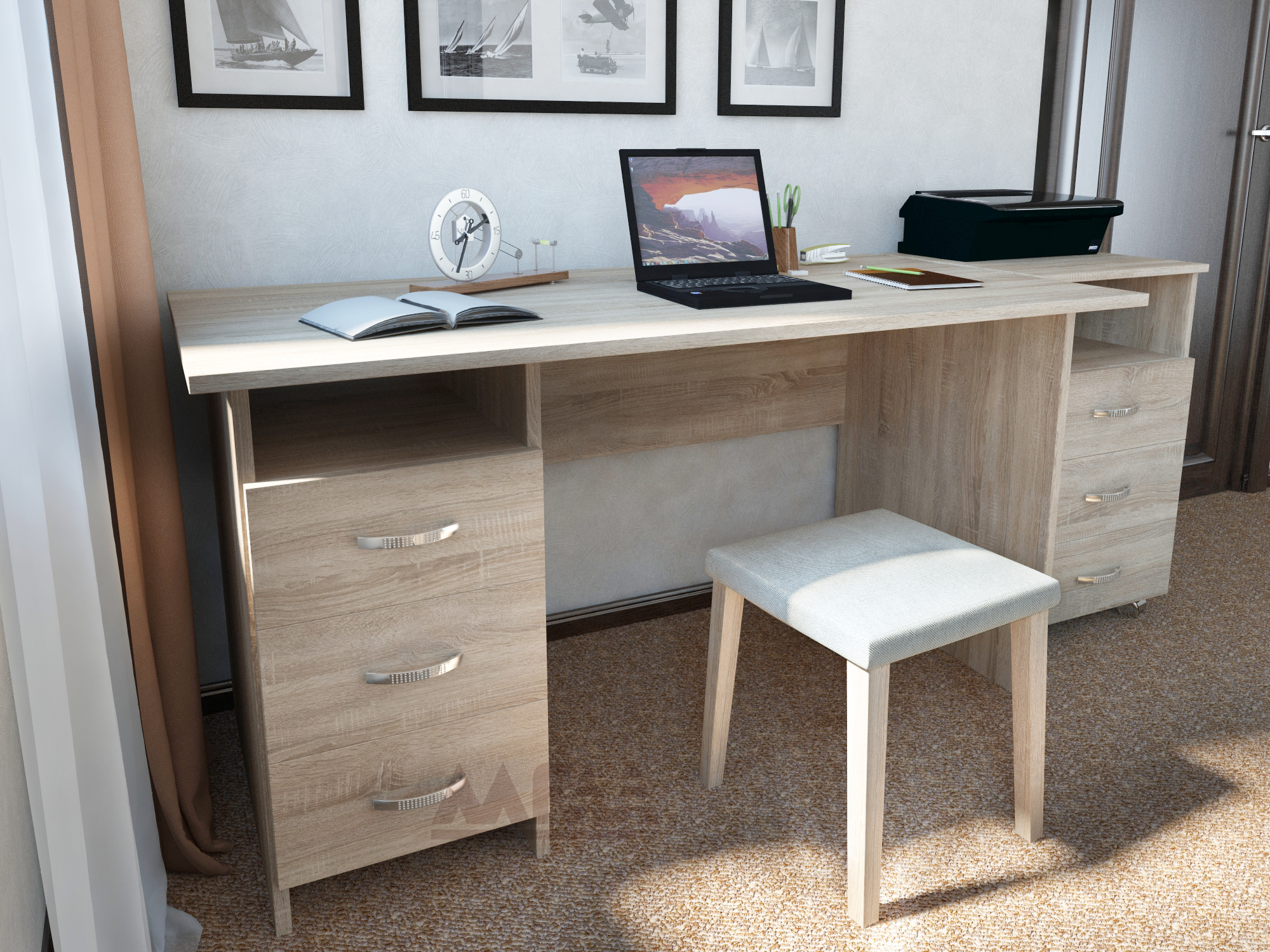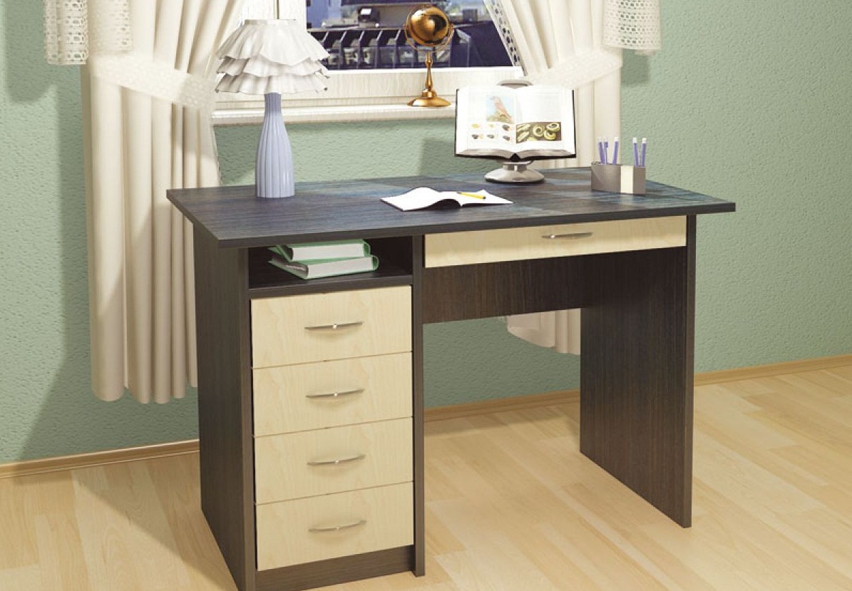 Option économique, nullement inférieure à leurs frères. Ceci est une table classique, a une armoire et de beaux tiroirs. En aggloméré.