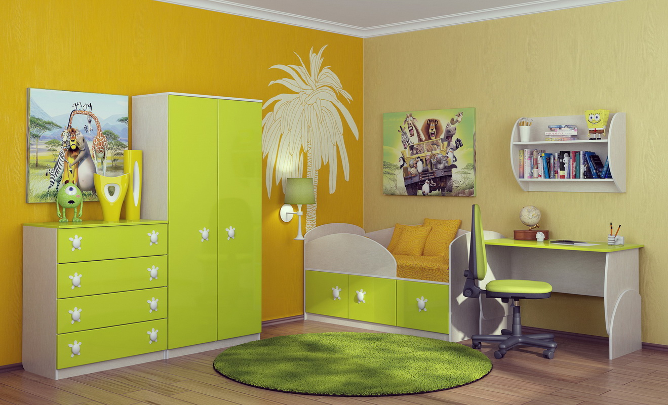 Lumineux, positif, ensoleillé - crée la même humeur chez un enfant. Idéal pour la chambre des enfants.Mais n'en faites pas trop, car les enfants sont facilement surchargés d'activités excessives.