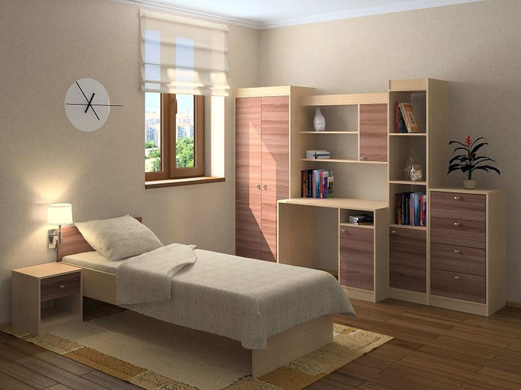- Module scolaire. Étagères, tiroirs, tables de chevet et une table - tout est combiné en un seul complexe. Un tel coin étudiant avec étagères et armoires sera plus pratique pour les petits appartements, où il n’ya pas de place pour placer ces meubles séparément.