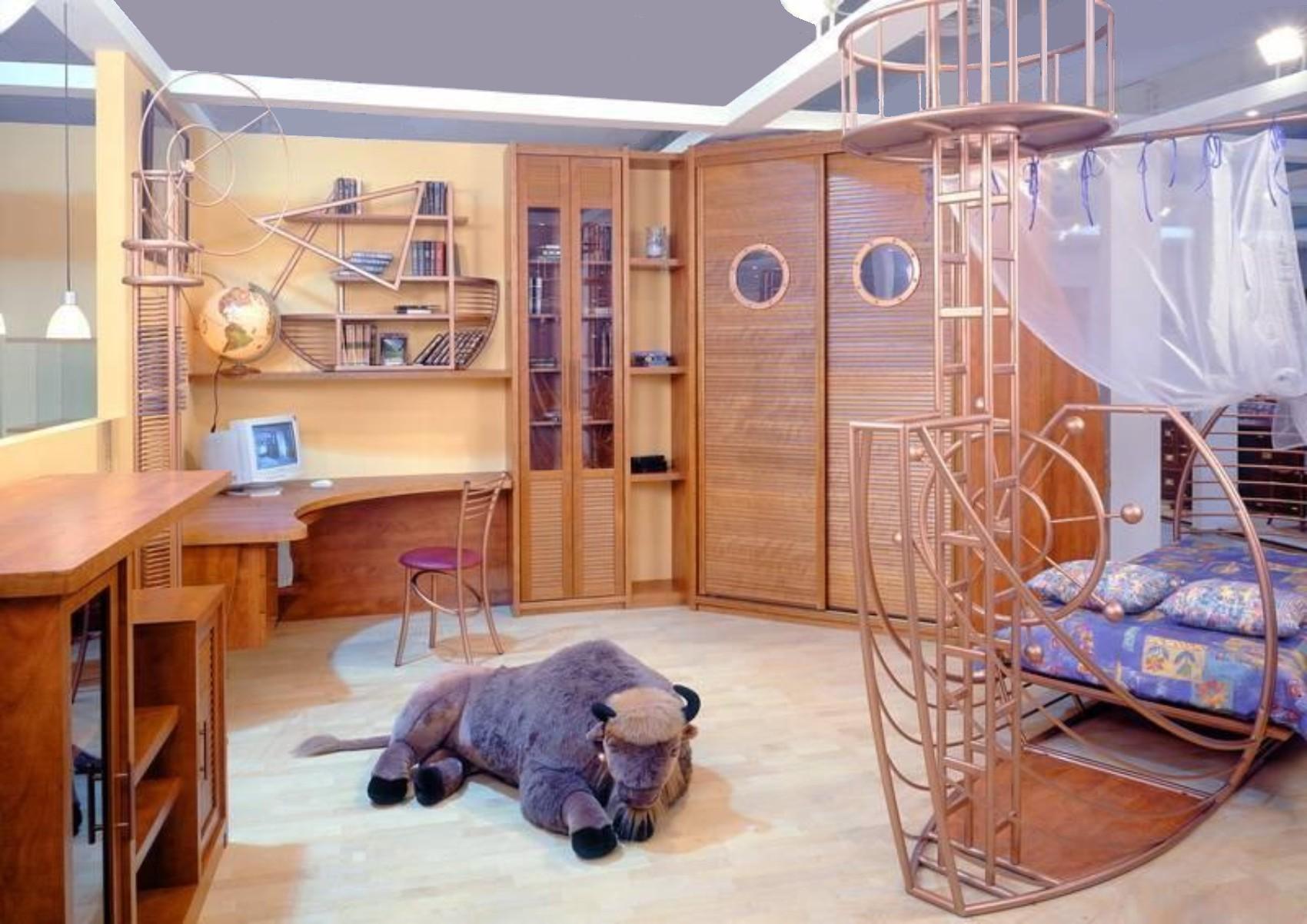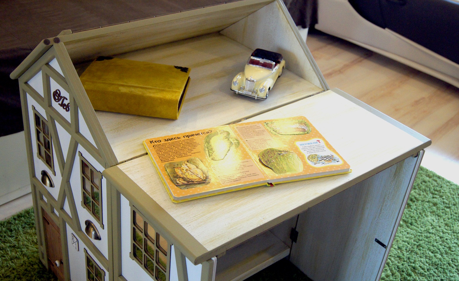 - Table-maison. Une solution extraordinaire pour la chambre d'un enfant est à la fois un élément de décoration et une table confortable avec des étagères et un élément de jeu.Les enfants adorent tout ce qui est fabuleux et magique. Il sera donc facile d'apprendre à travailler à une table aussi merveilleuse.