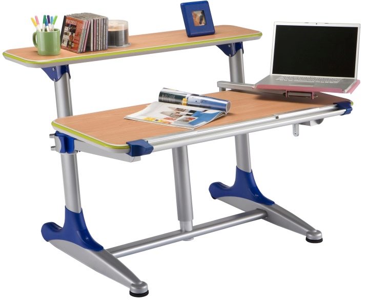 - Table de transformation. Si vous décidez d'acheter une table pendant une longue période, la table de transformation sera un excellent choix. Ces tables sont idéalement personnalisées en hauteur, vous pouvez même l'angle d'inclinaison. Ils le feront si un petit étudiant grandit.