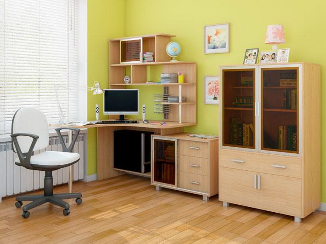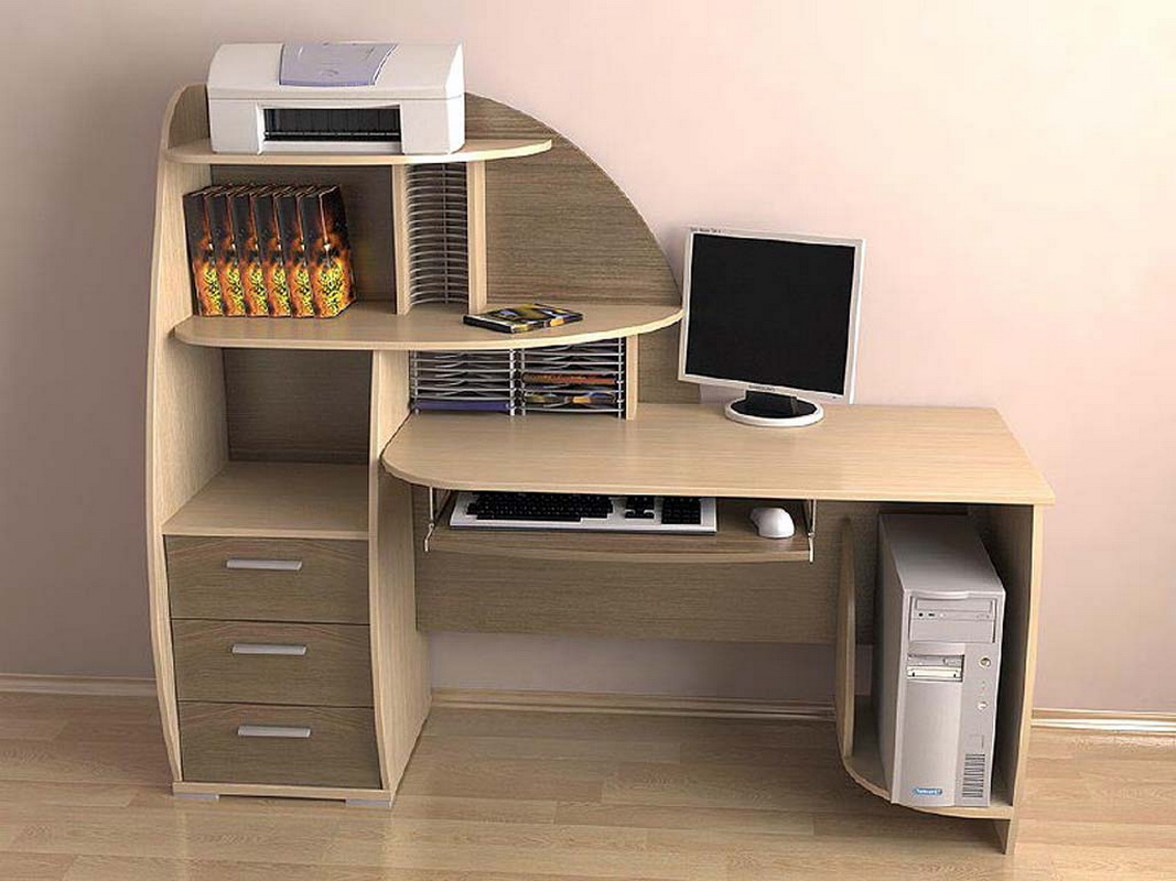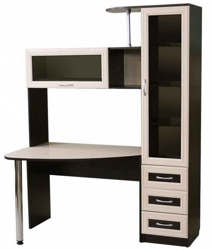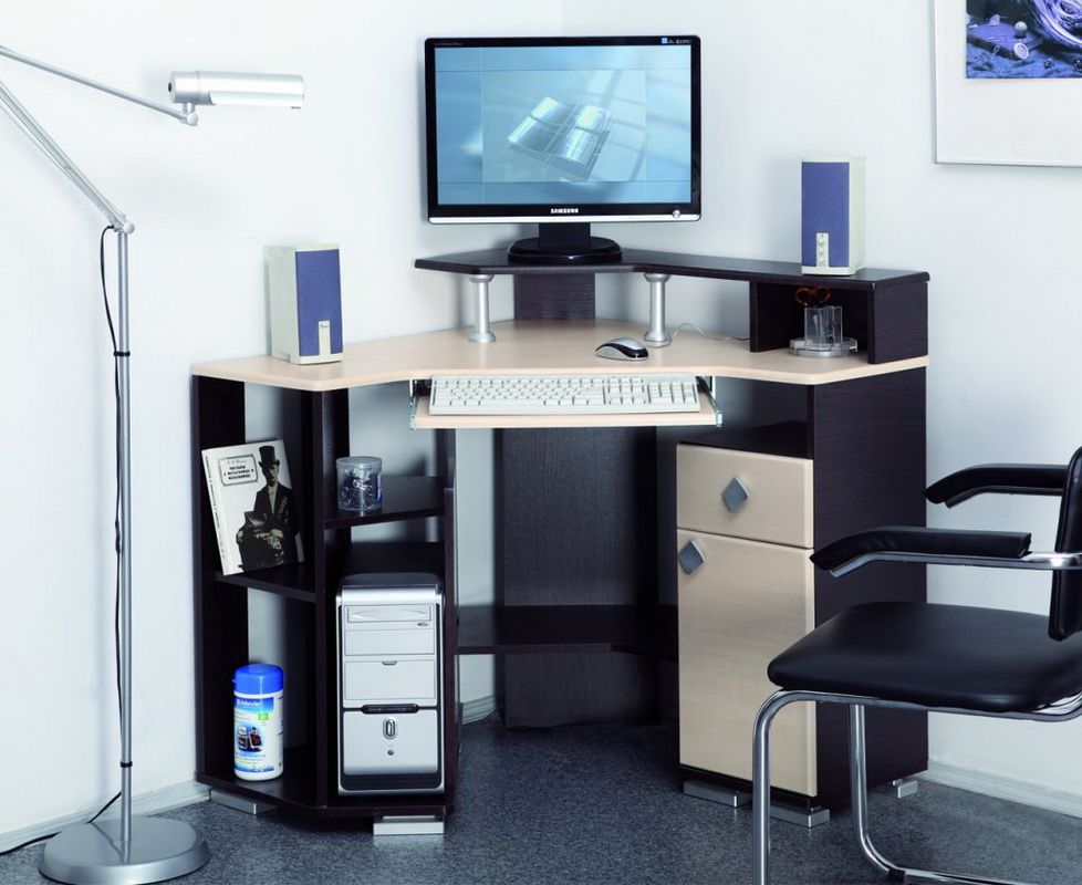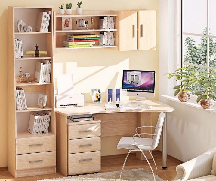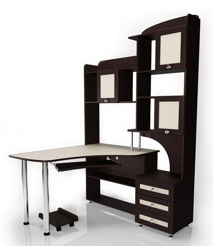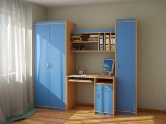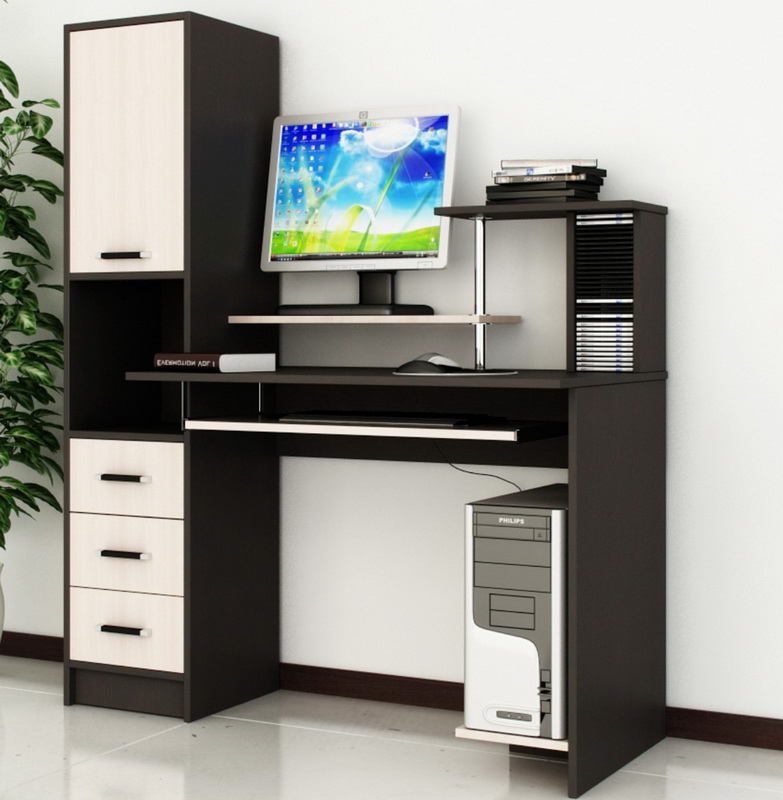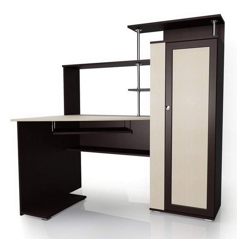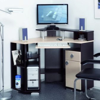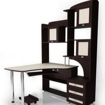 Souvent, le bureau de l’ordinateur sert non seulement à travailler sur un PC, mais également en tant que lieu de travail principal. Dans les chambres d'enfants et d'adolescents, il joue le rôle d'un lieu d'étude, de création et de lecture. Il n’est pas très pratique de se lever tout le temps pour obtenir un livre nécessaire au travail dans le placard, en particulier si la bibliothèque résidentielle se trouve dans une autre pièce, comme un salon. Par conséquent, il y avait des tables d'ordinateur avec une armoire qui vous permet de stocker des livres à proximité.