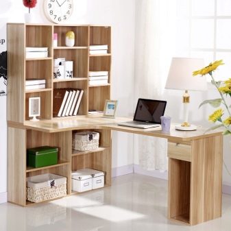 Ce sont des modèles modernes de tables d'ordinateur avec des étagères supplémentaires au-dessus du dessus de la table. Ils peuvent être utilisés pour stocker des livres, des cahiers, des CD et des gadgets décoratifs. Par exemple, une grande quantité d’espace libre vous permet de décorer la zone de travail avec des photographies et des souvenirs mémorables. Ils aideront à créer l'inspiration tout en travaillant à la table.