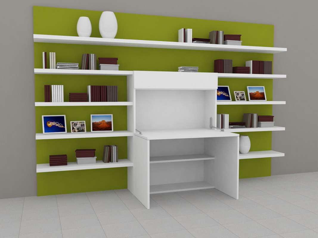 Ce meuble fournit une console spacieuse avec un endroit pour installer un moniteur LCD ou un ordinateur portable, vous pouvez également y écrire. Des étagères à livres entourent le lieu de travail, vous permettant ainsi d’atteindre facilement le volume souhaité. Il sera pratique pour les étudiants et les écoliers de garder les cahiers, albums et autres supports pédagogiques dans le placard.