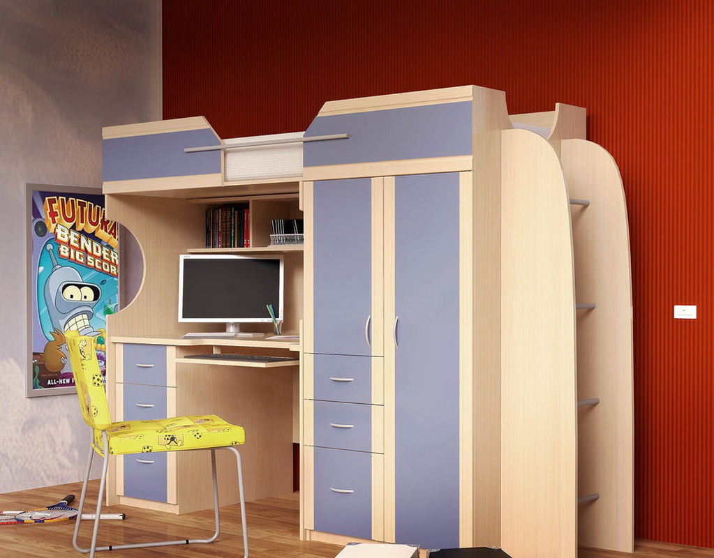 Par conséquent, les personnes qui parviennent difficilement à se concentrer sur leurs affaires à la maison peuvent envisager l’achat d’un tel modèle. C'est très économique, tout en offrant beaucoup d'espace de stockage. Parfois, il y a un lit au dessus de la table. De tels modèles sont populaires dans les chambres des enfants et des adolescents.