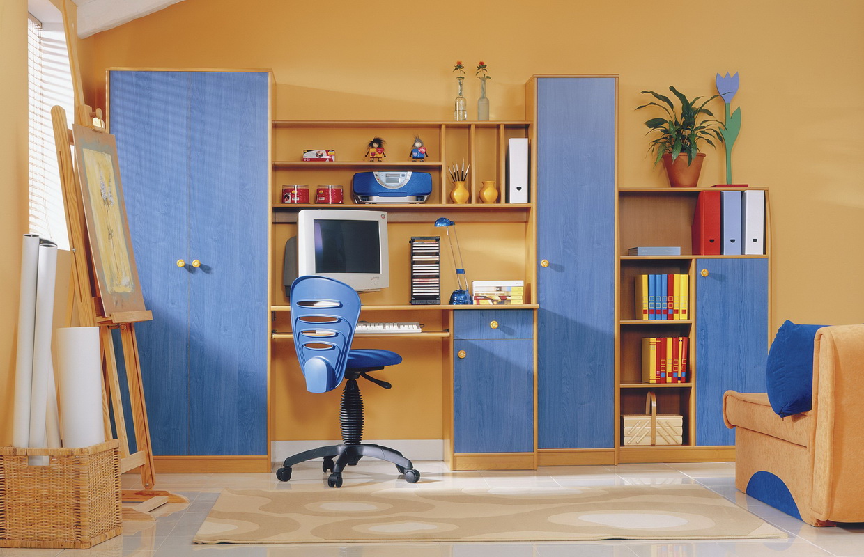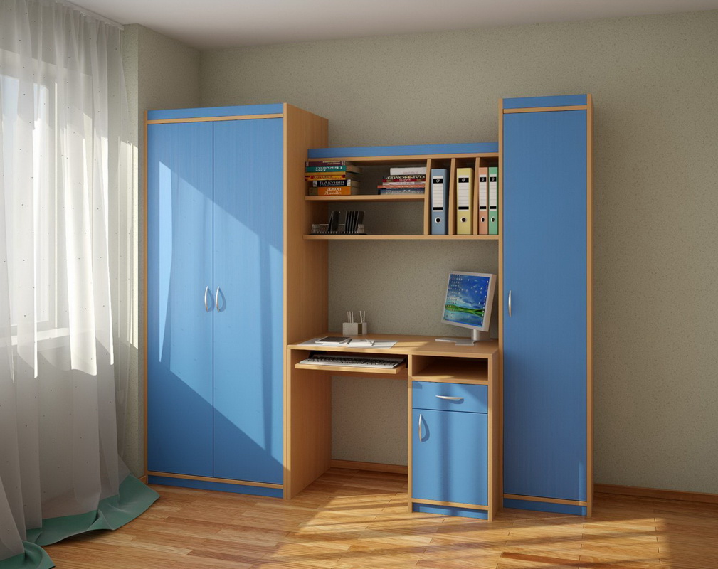 Les meubles modulaires sont toujours d'une commodité et d'une fonctionnalité particulières. En combinant un bureau d’ordinateur et une armoire, vous disposez d’un lieu de travail confortable pour une crèche ou un bureau.
