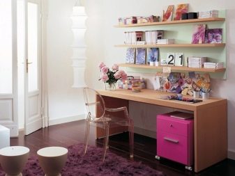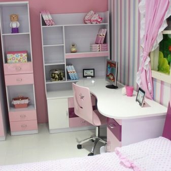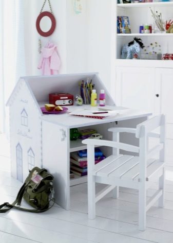 Quand la fille aura sept ou six ans, elle devra aller à l'école. Un nouveau style de vie nécessitera une nouvelle table. Plus pratique, haut et fonctionnel pour les tâches des étudiants. En choisissant une table dans la salle pour l'élève de première classe, vous devez toujours faire attention au composant externe, sans perdre de vue les propriétés pratiques.