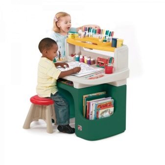 Si votre table a des étagères, laissez votre enfant les décorer. Peut-être pour vous, il ressemble à un gâchis, mais l'esprit mon propre monde de l'enfant, il sera plus facile d'apprendre en compagnie de ses amis, des jouets, et vous pouvez les utiliser, en expliquant le matériel, ce qui rend le processus d'apprentissage clair, indiquant tous les exemples.