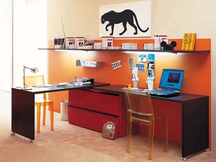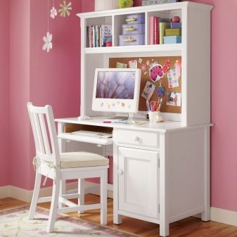 Très souvent, à partir de 12 ans, les parents achètent un bureau d'ordinateur, conçu pour un usage ultérieur au lycée et à l'université. Sa principale différence est cependant, un plateau de clavier et un compartiment spécial sous l'unité du système, ces tables souvent ne regardent pas trop à la mode, alors Vous pouvez également choisir la table d'angle classique.Il n’est pas nécessaire que l’unité centrale soit en bas, vous pouvez la placer dans un coin, tant que la lumière directe du soleil ou la batterie ne la chauffe pas.