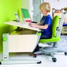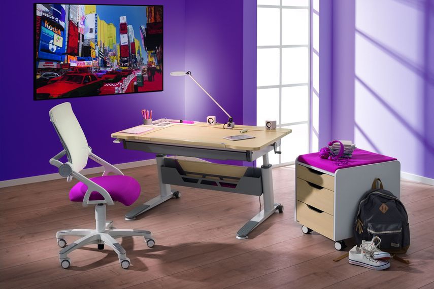 Un bureau en croissance ou réglable est un lieu de travail optimal qui peut ajuster sa hauteur et l’inclinaison de la table à la hauteur de l’enfant au fur et à mesure de sa croissance. L'abondance d'accessoires est immédiatement fournie ou achetée séparément. Ce sont des étuis, des tablettes latérales, des armoires à tiroirs, des porte-crayons, etc.