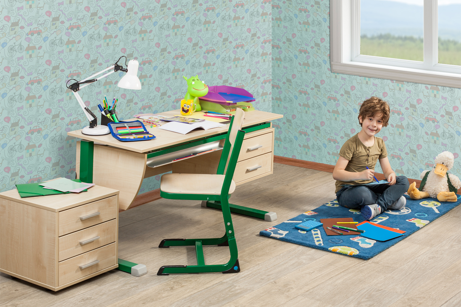 - couleurs vives et apaisantes pour que rien ne détourne des leçons;