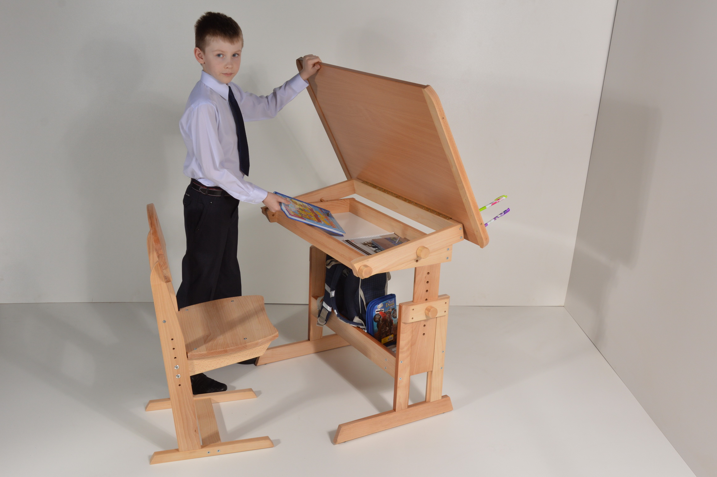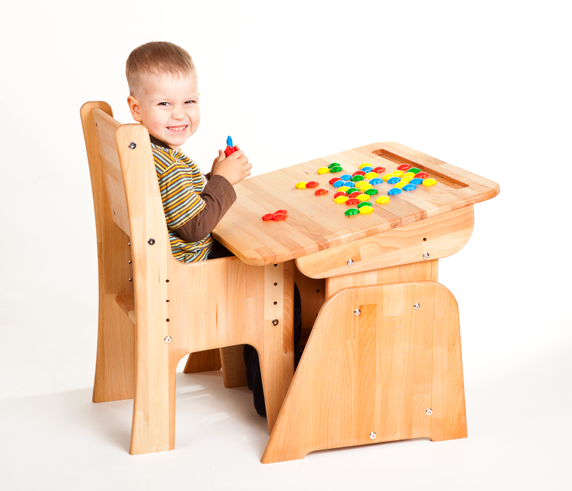 La table «Le petit cheval à bosse» est la meilleure option pour les petits scientifiques! Il convient comme chaise régulière et en croissance. Ceci est obtenu en ajustant la hauteur du plateau et l’angle d’inclinaison de la surface de travail (0% pour le dessin, 10% pour la lecture et l’écriture).
