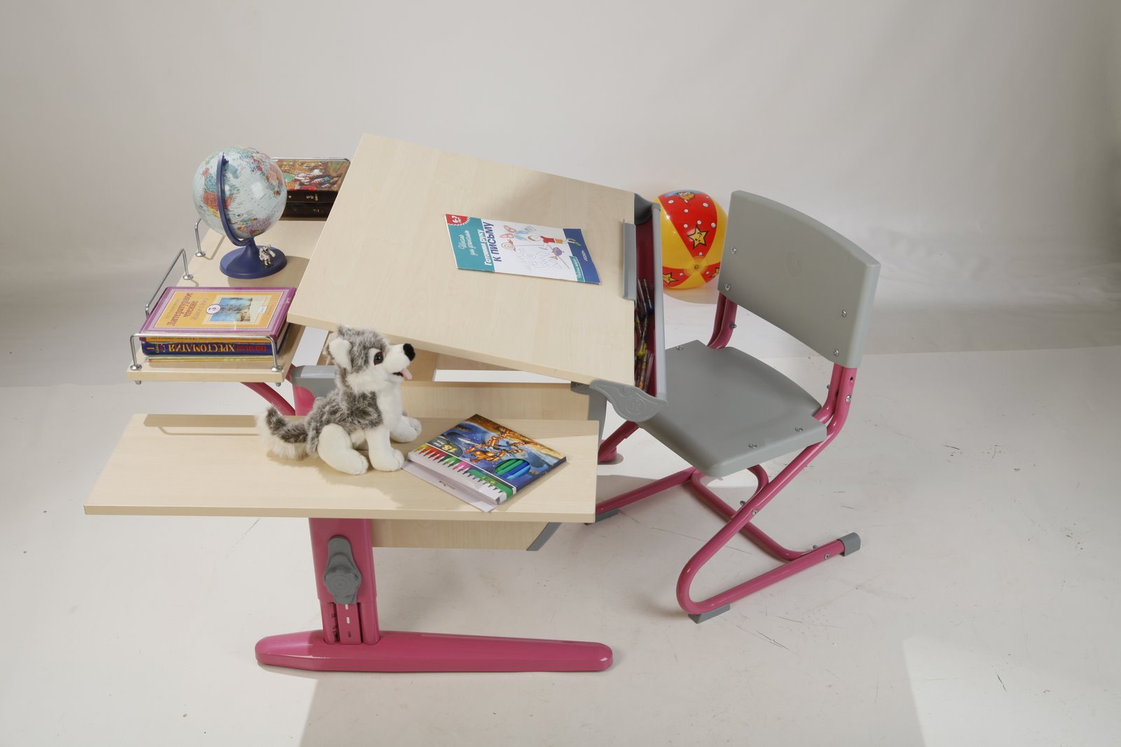 L'un des modèles les plus populaires est le bureau. Inclus avec elle est une chaise. Cette option sera optimale pour la formation correcte de la posture de l’enfant, du fait que la conception du pupitre tient compte des caractéristiques structurelles du corps. Un tel modèle ne profitera qu'à votre progéniture.