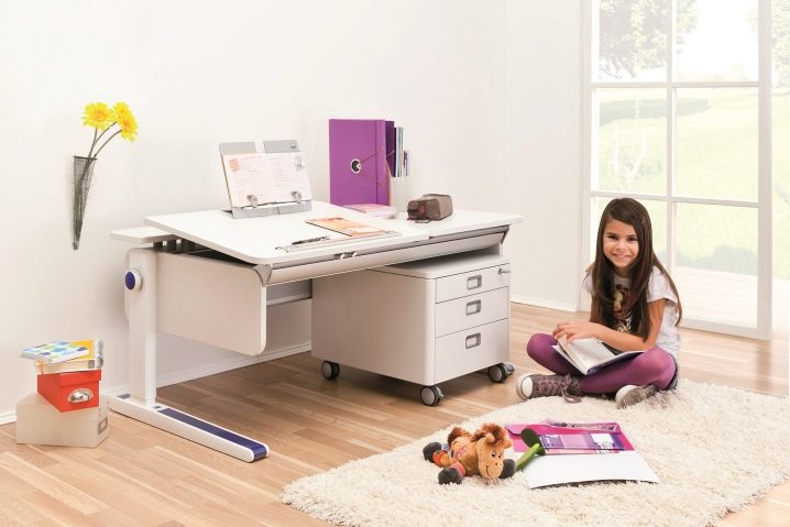 Les bureaux seront la meilleure option pour les enfants et les adolescents de 120 à 180 centimètres de hauteur. Le modèle diffère du confort et de la mobilité. Vous pouvez facilement et facilement réorganiser les meubles dans n'importe quel endroit pratique. La commodité réside dans le fait que les modèles ont une large gamme de réglages. Vous pouvez ajuster le produit même pour des tailles non standard.