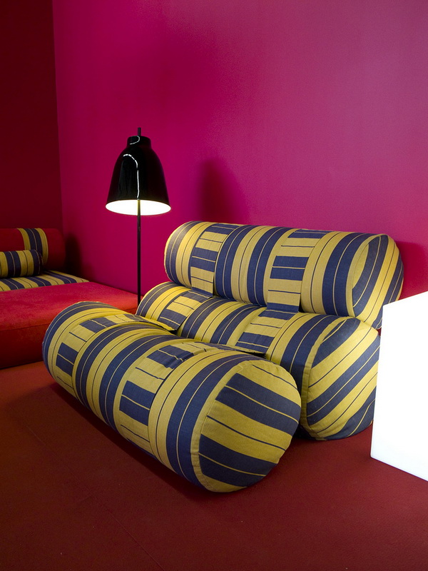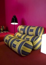 - "Moderne". Un trait distinctif de ce canapé est sa couleur rouge. Le design se caractérise par une faible largeur - jusqu’à 150 cm pour une hauteur d’assise de 45 cm et un poids de seulement 5 kg, ce qui facilite son placement n’importe où dans la pièce. Le polystyrène expansé est utilisé comme charge.