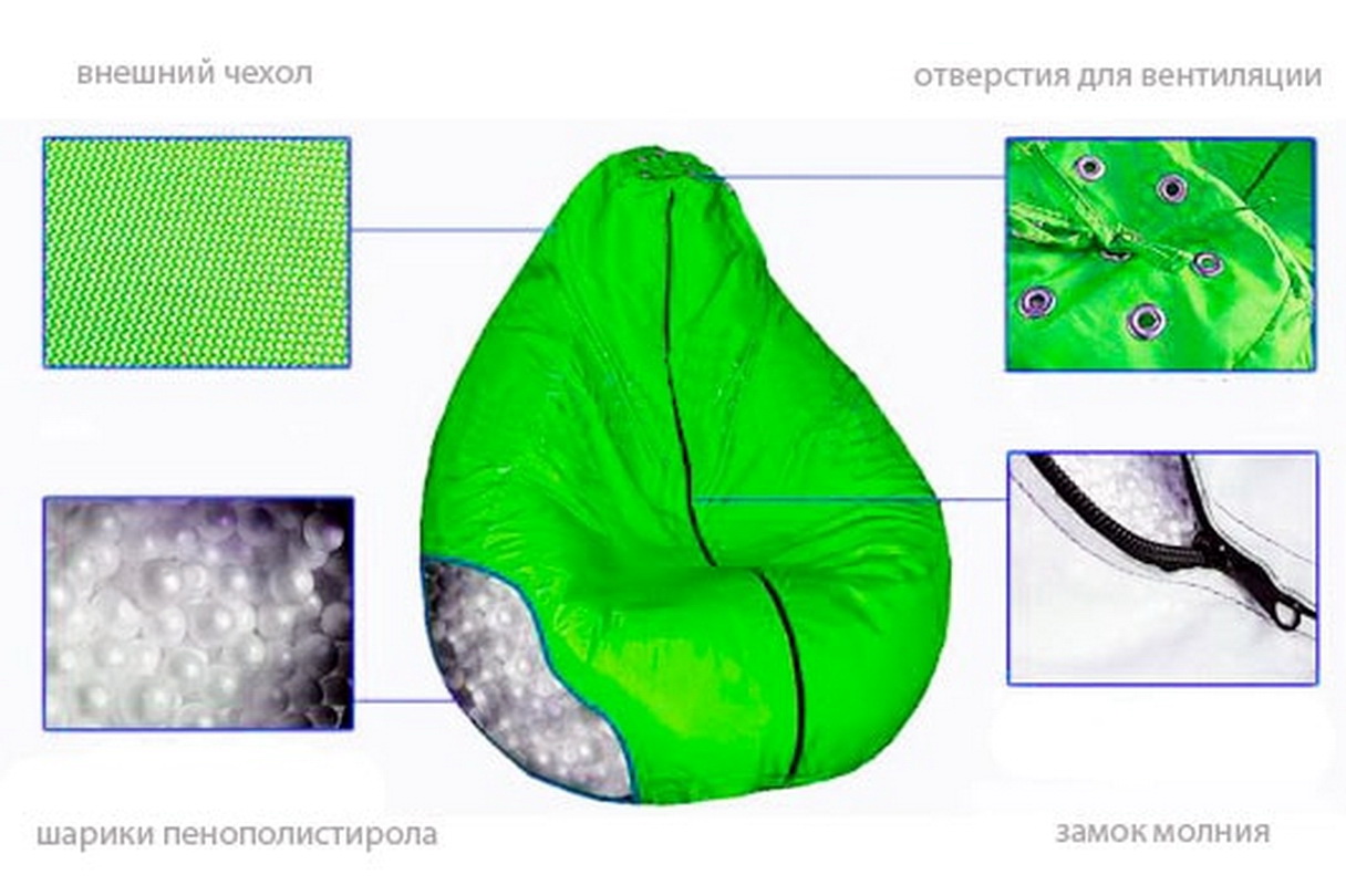 - Au fil du temps, la charge perd sa forme, ce qui conduit à son compactage progressif.Par conséquent, pour conserver un volume optimal, vous devez régulièrement remplir le canapé de nouvelles boules.