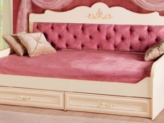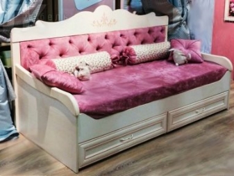 Les tailles de ce mobilier peuvent être diverses.Vous pouvez acheter un lit simple pour une fille et un canapé à trois lits. Il en va de même pour l'apparence de tels meubles. Pour un enfant, vous pouvez acheter un canapé pliant de la forme d’un animal ou d’une machine à écrire, mais un pouf pour adolescent peut ressembler beaucoup à un canapé classique.