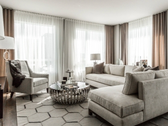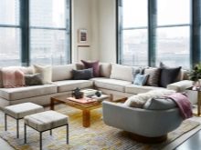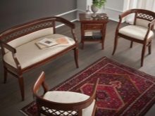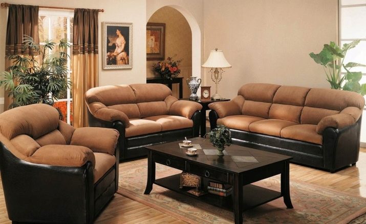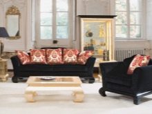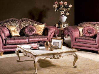 De nombreux fabricants proposent des ensembles complets de meubles rembourrés, réalisés dans le même style. En plus du canapé, vous pouvez commander des chaises ou un pouf, ce qui créera une atmosphère harmonieuse et élégante dans la pièce.