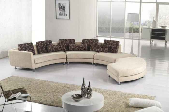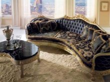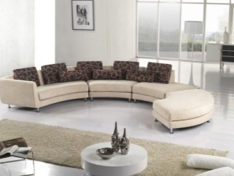 Pour ceux qui préfèrent les lignes lisses, les usines de meubles créent des canapés semi-circulaires ou arrondis. Une forme incurvée inhabituelle rend la situation plus douce et élégante. Comme les modèles angulaires, ces modèles peuvent être monolithiques ou modulaires. Cette dernière option vous permet de modifier vous-même la taille du meuble.