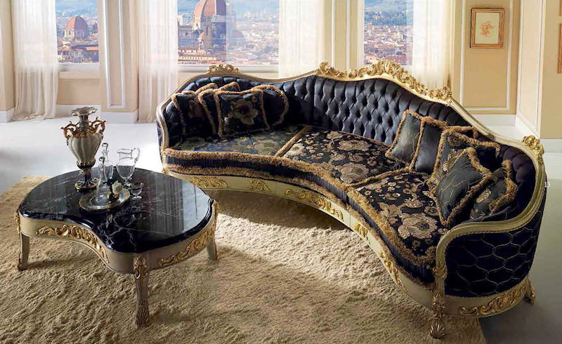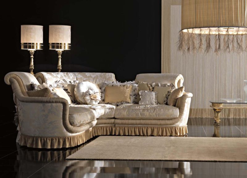 Les fabricants de meubles de luxe proposent des canapés de différentes formes. Les modèles fabriqués dans le style "palais" luxe, rétro, Provence, pays ont généralement un look classique et droit.