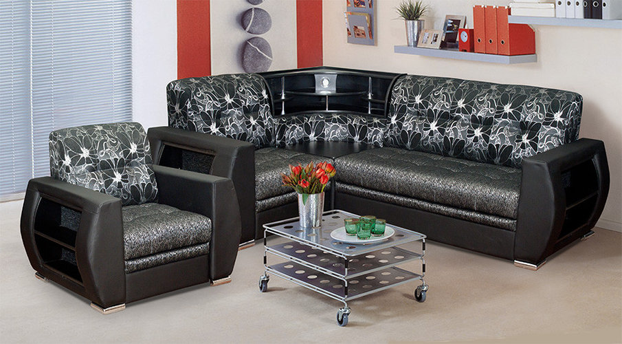 Les options uniques des modèles modernes vous permettent de garder vos boissons en main dans le bar intégré, de recharger votre téléphone sans vous lever du canapé et même d'écouter de la musique dans un lecteur de musique intégré au corps du meuble. Les modèles pliants avec couchette peuvent remplacer le lit. Une étagère dans les accoudoirs peut être un atout majeur pour l’intérieur et permettra d’économiser de l’espace dans la pièce.