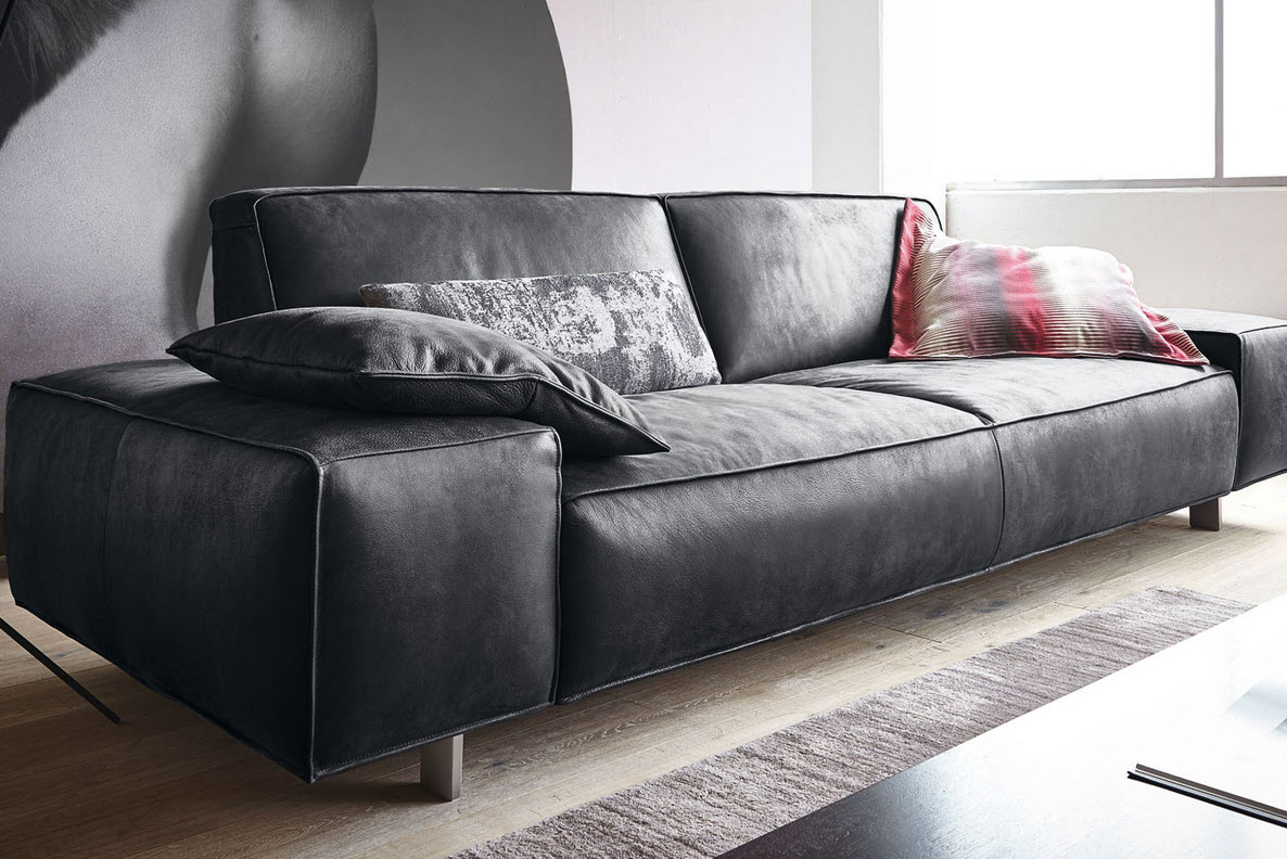 La garniture en matériaux coûteux constitue un excellent ajout à la gamme. Les meubles les plus populaires en cuir véritable. Ce matériau peut résister à des années d’utilisation active sans perdre sa belle apparence. Il est sans prétention dans les soins, flexible et fiable. Il est possible d'endommager la peau uniquement avec des objets pointus. Il est donc utile de protéger un tel canapé des griffes des animaux domestiques.