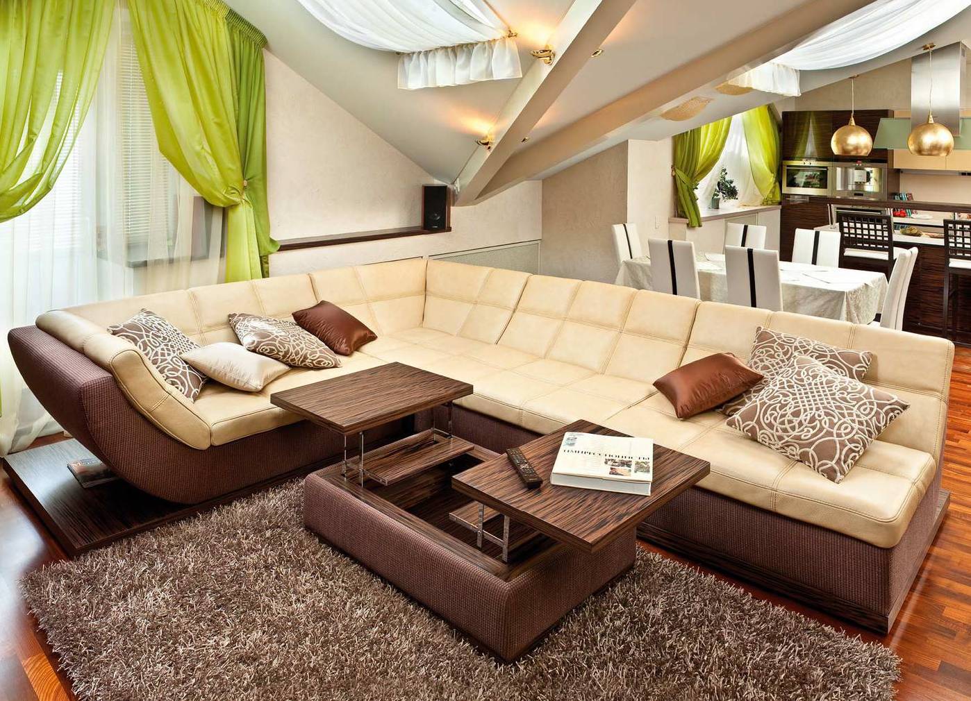 - Canapé pour le salon peut être n'importe lequel. L'essentiel est que le modèle s'intègre harmonieusement à la situation et coïncide en style et en couleur.
