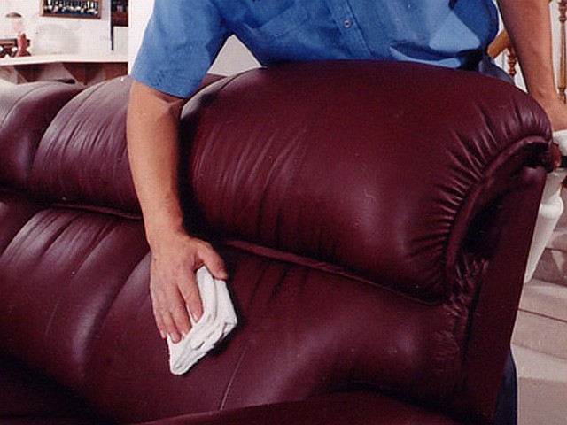 Ne laissez pas l'apparition de défauts dus à des contraintes mécaniques. Essuyez les meubles une fois par semaine avec un chiffon doux en microfibre humecté d'eau savonneuse, puis retirez le savon avec un chiffon humide et séchez la surface (une humidité excessive sur le tissu peut accélérer la corrosion). Pour éviter que des taches pénètrent dans la structure en similicuir, retirez la saleté immédiatement après son apparition. Taches "difficiles" (encre, vernis, crayon), retirez la solution alcoolique.