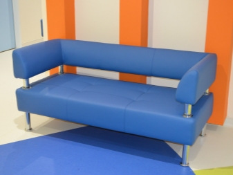 - Modèle "Blues". Cette version du canapé de bureau est capable de donner à l'atmosphère une harmonie et une élégance, il sera bénéfique de regarder dans une pièce où il est nécessaire de mettre en valeur la légèreté et la grâce. Des couleurs vives associées à des matériaux durables, des modèles à dossier haut et des pieds en métal incurvés feront bonne impression sur les visiteurs.