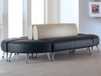 Les variantes modulaires comprennent une sous-espèce de canapés à haut dossier. Ils sont idéaux pour la réception de zonage de concepteur et présentent également des avantages fonctionnels. De tels modèles sont optimaux pour les salles de réunion, car ils créent une atmosphère d'espace fermé. Les matériaux à partir desquels le produit est fabriqué fournissent une isolation phonique.