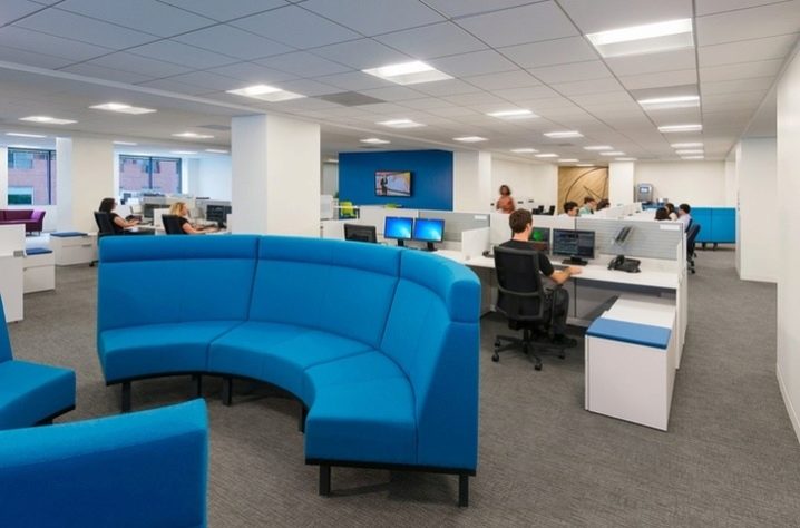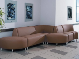 Une autre caractéristique du choix des canapés de bureau est leur utilisation rationnelle dans l’espace de la pièce. De nos jours, les concepteurs préfèrent de plus en plus les canapés d'angle et modulaires. La compacité de tels modèles permet de ne pas encombrer. En même temps, le mobilier est spacieux et confortable pour les visiteurs.C'est très pratique lors des négociations dans les bureaux, en attendant la réception dans des halls ou des lieux de repos.