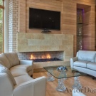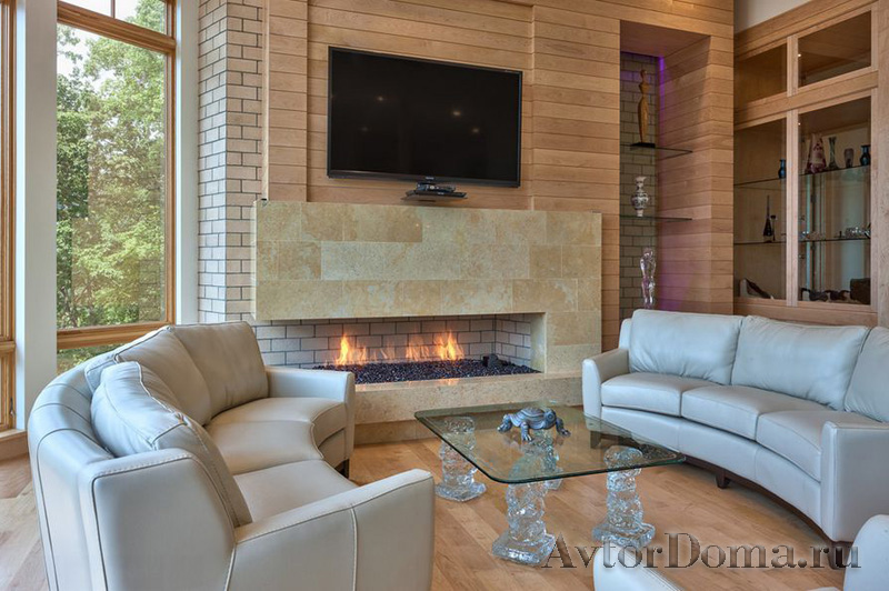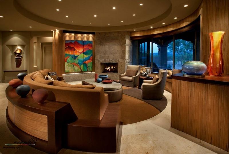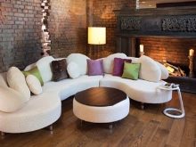 Dans ce cas, le centre de composition reste opposé et quelque peu éloigné du canapé. S'il s'agit d'un intérieur rétro classique, l'emplacement du canapé semi-circulaire se trouvera bien sûr près de la cheminée. Pour le style urbain, la zone de télévision est le bon choix.
